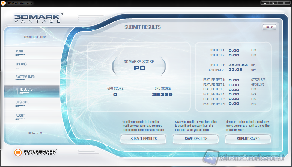 Benchmark sintetico sviluppato da Futuremark, richiede obbligatoriamente la presenza nel sistema di una scheda video con supporto alle librerie API DirectX 10 ed un sistema operativo Mircosoft Windows Vista o 7. Il benchmark si compone di 4 distinti test: 2 incentrati sulla GPU e 2 sulla CPU. In questo caso abbiamo effettuato i test relativi alla GPU e quelli relativi alla CPU in due sessioni differenti.