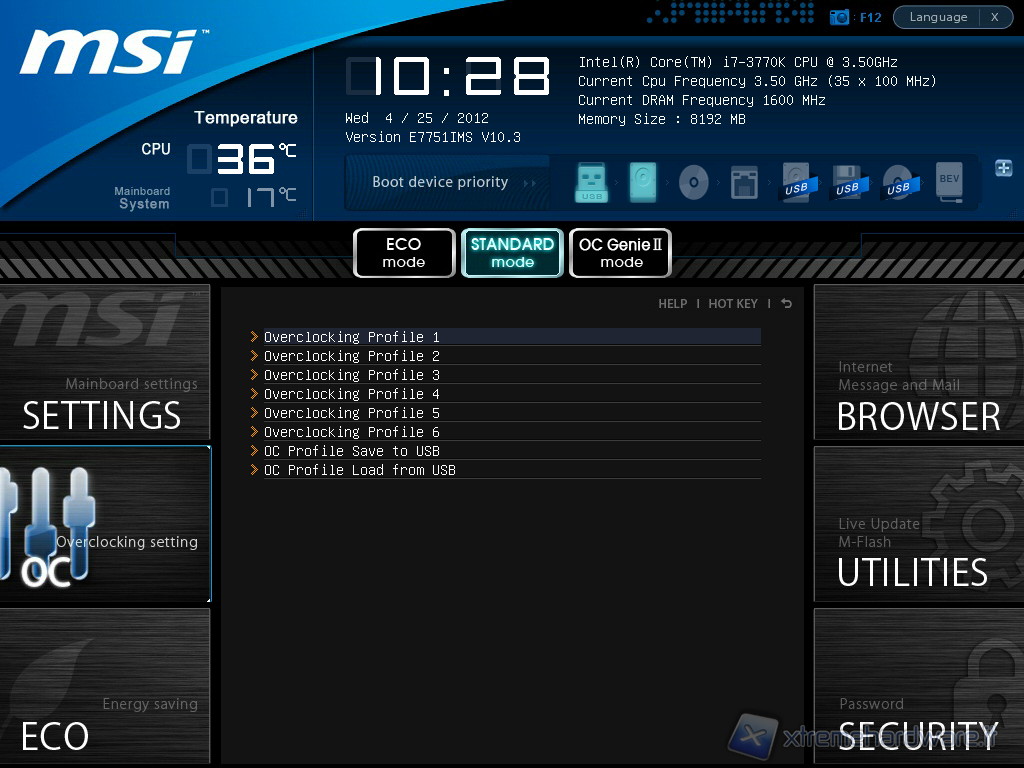 Accedendo al BIOS ci troviamo di fronte ad un interfaccia estremamente ordinata con, nella parte alta, l’informazione più importante di tutte: la temperatura del processore e del sistema. Si distinguono altresì l’ora e la data, la versione del BIOS, il tipo di processore con la frequenza di quest’ultimo e quella della memoria unitamente alla quantità di memoria installata (vista) dal sistema. A fianco al tasto Boot Priority abbiamo le periferiche di storage connesse al sistema.